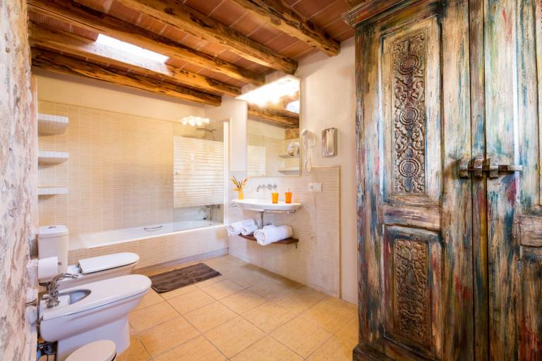 Wunderbares Anwesen zwischen Santa Eulalia und San Carlos gelegen. Das Anwesen besteht aus zwei alten Häusern, die etwa 500 Jahre alt sind und geschmackvoll restauriert wurden, um ihren historischen Charme mit den neuesten Annehmlichkeiten des modernen Lebens zu kombinieren. Beide Häuser werden zusammen vermietet und niemals getrennt, so dass sowohl Gärten, Pool, Grillplatz, Sporteinrichtungen und Gemüsegarten zu 100% privat für den Gast sind.